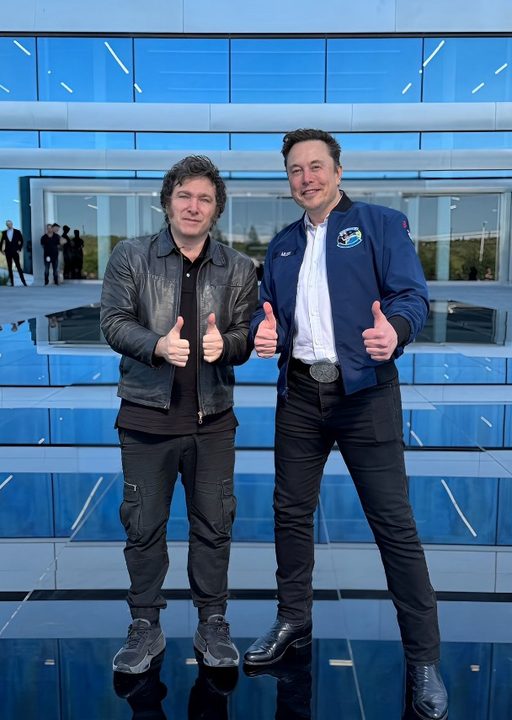 “Viva la libertad, carajo”, fue lo primero que tuiteó el presidente ultra junto a un collage de fotos con Musk: en una posan con los pulgares levantados, en otra se dan la mano, en una tercera se muestran en la sala de reuniones de Tesla y aparecen también con otros acompañantes, como Karina Milei, secretaria de Presidencia y hermana del gobernante. “¡Por un futuro apasionante y prometedor”, tuiteó a su vez Musk.