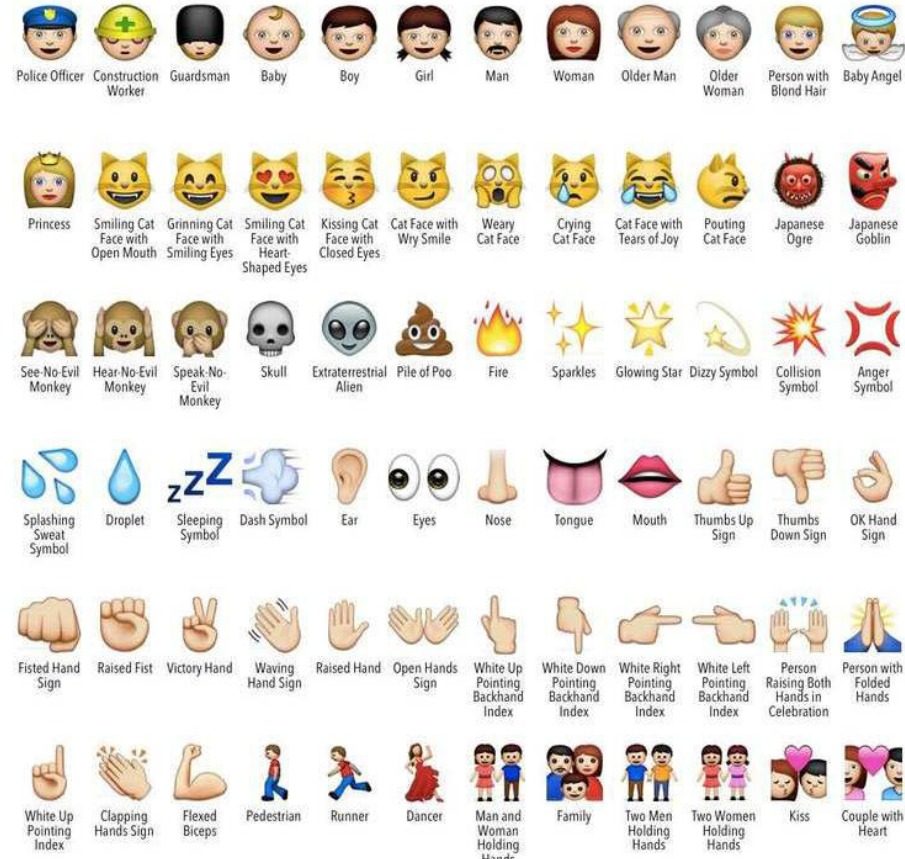 Una cosa: los emojis se ven diferentes, dependiendo de la plataforma que estés usando; Ya que iOS y Android son los más frecuentes, hemos incluido las imágenes de ambas plataformas. Visita la Emojipedia para obtener una lista completa de Emojis por plataforma.