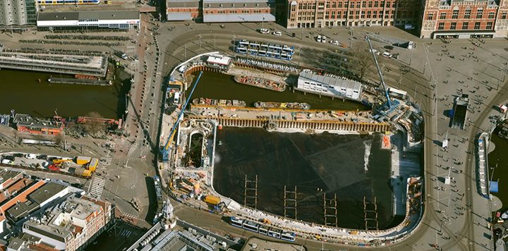 La obra se encuentra cerca de la Estación Central de la urbe, y es parte de un proyecto de renovación a gran escala, el diseño del primero fue realizado por el estudio wUrck architecture, con sede en Rotterdam, y el trabajo comenzó en el lado de la estación en 2018. Stationsplein ha sido construido a más de 9 m (30 pies) por debajo del Open Havenfront por el Grupo Max Bögl, bajo el agua entre Prins Hendrikkade y Stationseiland.