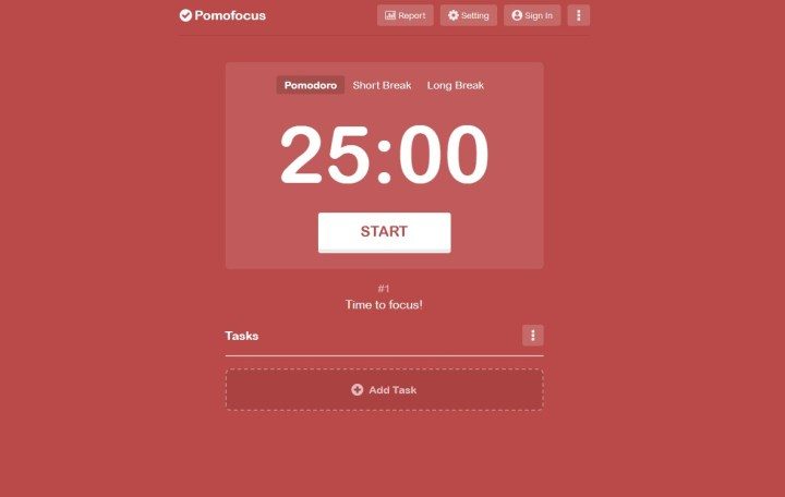 Una vez más, el método Pomodoro no es nada nuevo, pero Pomofocus lo hace simple y fácil de seguir (o personalizar). Puede iniciar el temporizador sin ningún proceso de registro molesto; Sólo tienes que pulsar START y empezar a trabajar.