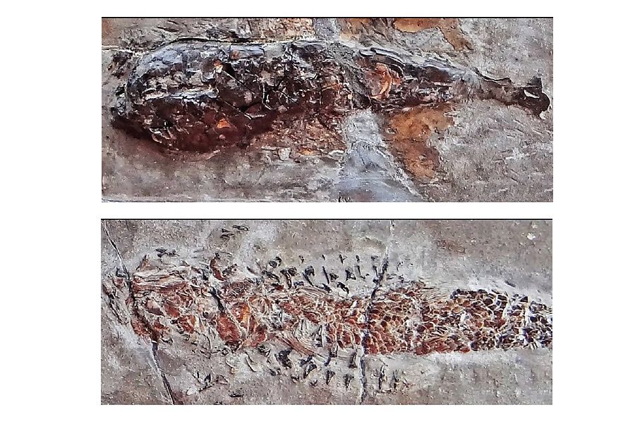 El primero es una especie de calamar extinto llamado Clarkeiteuthis Montefiorei, mientras que el segundo es un pez del tipo Dorsetichthys bechei, ambos pertenecientes al periodo Jurásico.