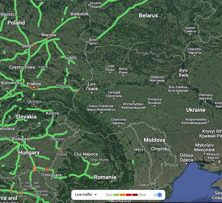 Google desactivó de manera temporal las funciones de tráfico en directo que proporciona Google Maps en Ucrania. De acuerdo con lo señalado por la compañía, se tomó esta decisión como una manera de proteger la seguridad de los habitantes del territorio mientras es invadido por Rusia.