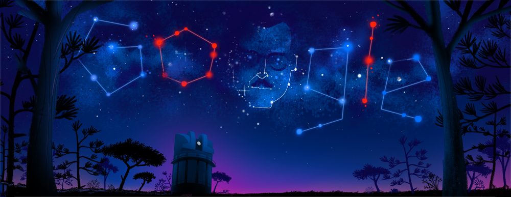 Por eso, la página de inicio de Google celebra hoy con su Doodle al astrónomo, a través de una creativa ilustración de una imagen que refleja su principal pasión: el universo, y un bosquejo de su rostro dibujado en las estrellas.