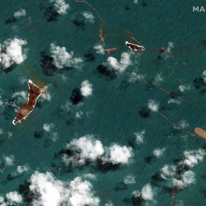 Las fotografías satelitales fueron publicadas por la compañía Maxar Technologies, especializada en innovación espacial, y dejan ver cómo el océano Pacífico se “traga” la isla del volcán que luego de la erupción prácticamente desaparece.
