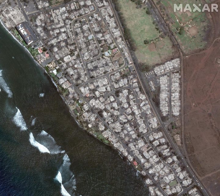 Y a través de imágenes satelitales que se centran en el área histórica de Lahaina, queda de manifiesto el alcance de la destrucción y la devastación.