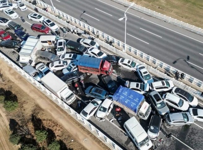 Una de esas imágenes increíbles sucedieron en China, ya que una fila de más de 200 autos y camiones aplastados y apilados uno encima del otro, dejó un enorme choque múltiple en el puente de Zhengxin Huanghe ubicado en la provincia de Henan, al centro del país.