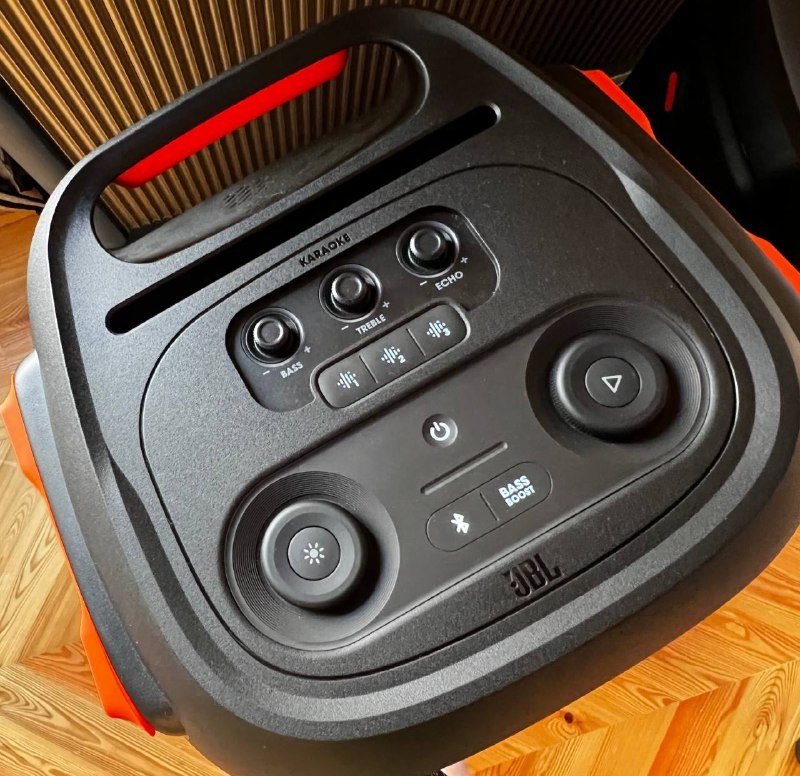 Este altavoz de gran tamaño tiene iluminación RGB y certificación IPX4 para resistencia a salpicaduras de agua. En términos de conectividad, cuenta con Bluetooth y puerto USB, además de entradas para guitarra y micrófono (esta última para aprovechar también el modo karaoke). Desde la app de JBL se puede gestionar la reproducción de música y personalizar las luces.