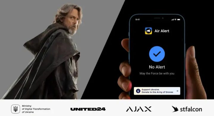 La nueva opción forma parte de la alianza entre Air Alert y United24, una plataforma del gobierno ucraniano para recaudar fondos para afrontar la guerra. El jedi es embajador de la iniciativa.