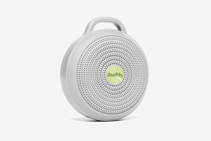 Otro producto de Marpac, la Hushh, tiene una serie de características diseñadas para ayudar a calmar a tu bebé. Esta máquina de ruido viene con tres configuraciones de ruido: ruido blanco brillante, ruido blanco profundo y oleaje suave, todos los cuales se pueden escuchar en el sitio web de Marpac. También está diseñada con una cálida luz LED ámbar y un botón de volumen a prueba de niños, lo cual viene a significar que tu pequeño no lo subirá accidentalmente si agarra el dispositivo. Uno de los elementos más útiles del Hushh es su portabilidad; su sujeción te permitirá colocar fácilmente la máquina en un cochecito o en el asiento para automóvil, lo que te ayudará a bloquear los ruidos circundantes y las interrupciones mientras viajas.
