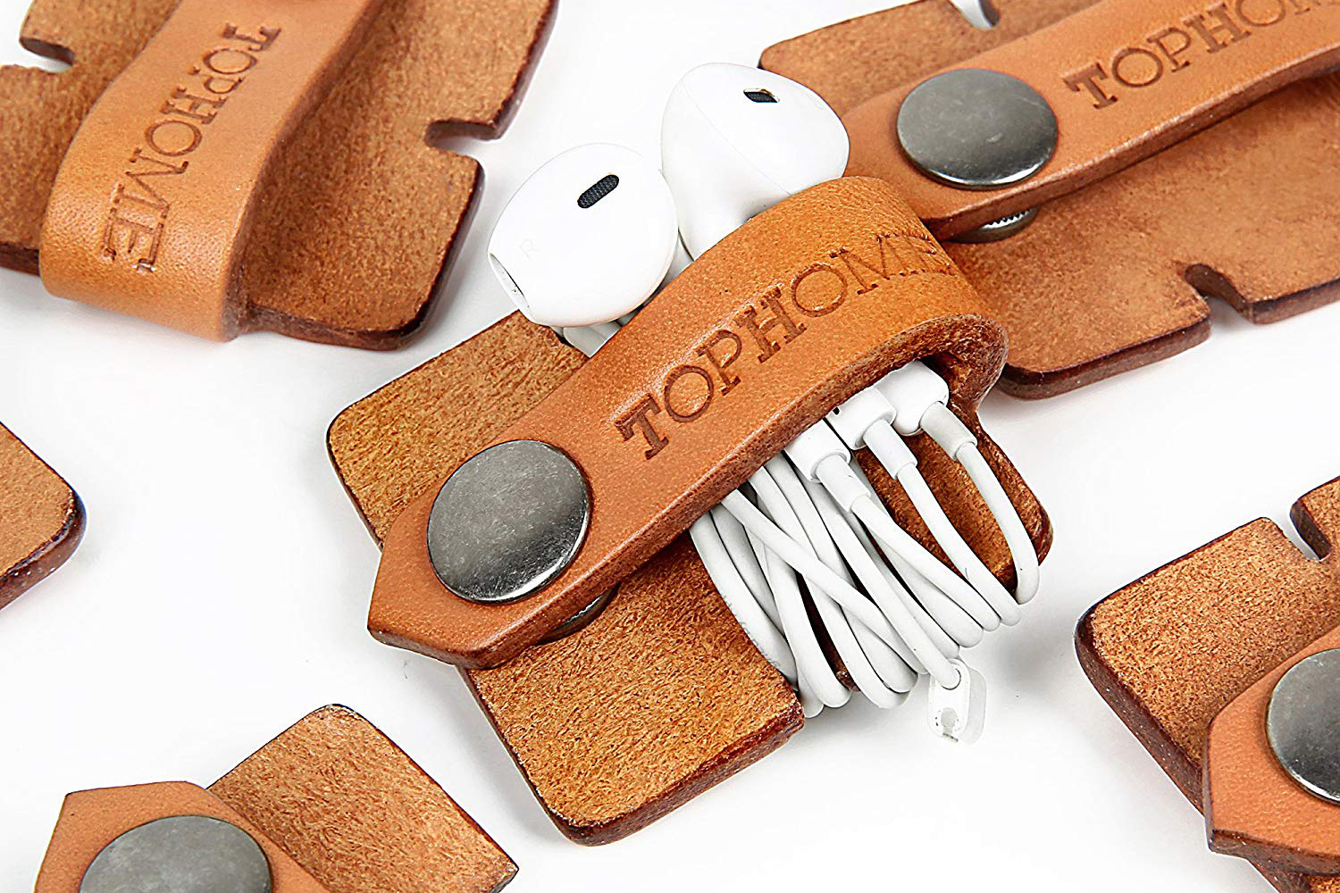 Los auriculares con cable siguen siendo geniales, pero a veces (¡casi siempre!) son un lío enredado en tu mochila o bolsillo, cosa que por lo demás siempre parece suceder, no importa lo bien que los guardes. El soporte para el audífonos y organizador de cables Tophome, hecho de cuero genuino, te asegura que nunca más tendrás que lidiar con esa molestia.
