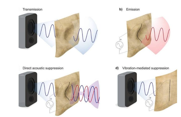 Los investigadores del MIT han acoplado una fibra piezoeléctrica de una sola pieza y 0,13 mm de grosor al centro de la tela. Al igual que sucede con el sistema de cancelación de ruido de los auriculares, las ondas sonoras del tejido se desfasan con respecto a las del sonido que se quiere anular, provocando su bloqueo. Una tela así, explican, puede utilizarse para crear cortinas separadoras en espacios de trabajo abiertos o instalarla directamente en la pared para impedir que llegue a casa el molesto ruido del vecino.