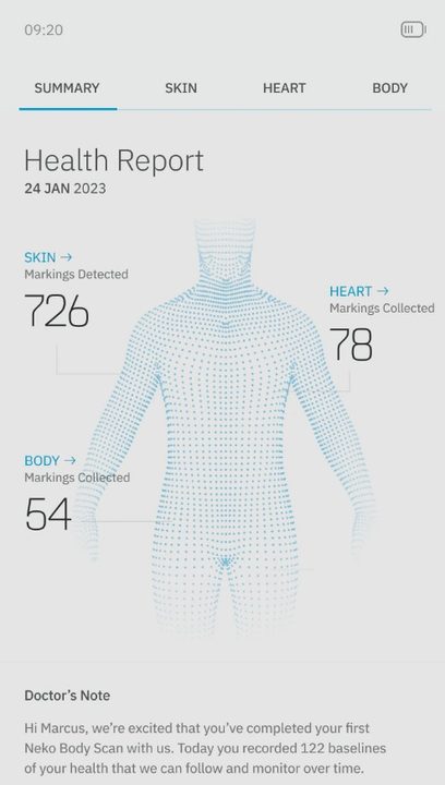 Neko Health utiliza los últimos avances en IA para realizar un escaneo de cuerpo completo destinado a ayudar a los pacientes a abordar los problemas de salud actuales y potenciales. Del mismo modo, estos datos pueden ser utilizados por los profesionales médicos para crear una visión holística de los pacientes.