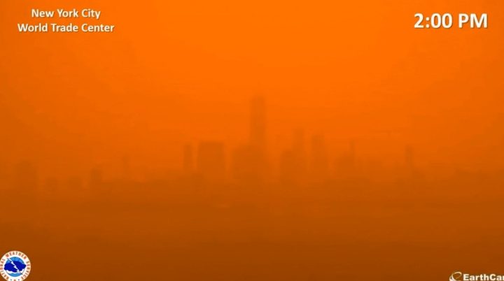 Un asombroso lapso de tiempo del Servicio Meteorológico Nacional mostró cómo el aire de la ciudad de Nueva York se volvió de un impactante color naranja nebuloso en cuestión de horas el miércoles mientras partes del estado lidiaban con el humo de los incendios forestales que ardían en todo Canadá.