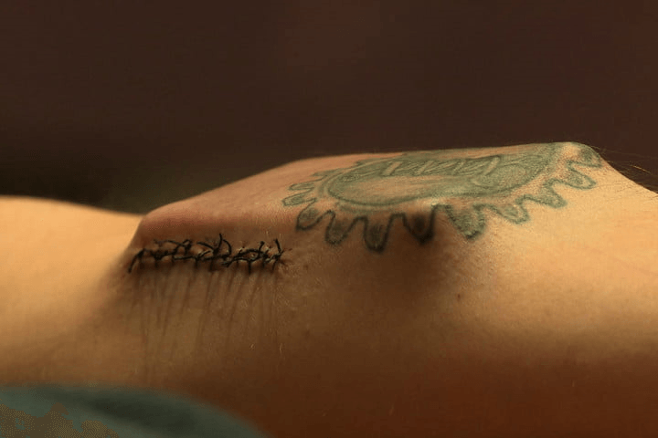 En este caso, el implante voluminoso sobresale de forma bastante visible desde el fondo de su antebrazo.