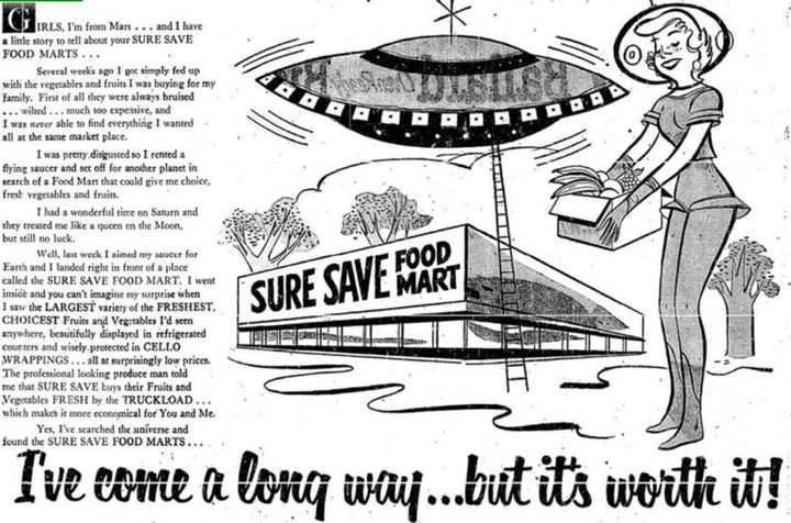 Una interesante y entretenida investigación realizaron Matt McAllister, profesor de producción cinematográfica y estudios de medios, quien colaboró con Greg Eghigian, profesor de historia para revisar más de 150 anuncios impresos y televisivos de 1947 a 1989, y que se publicaron en Advertising & Society Quarterly: la tesis es cómo la publicidad durante la Guerra Fría fue moldeada por el fenómeno Ovni y extraterrestres.