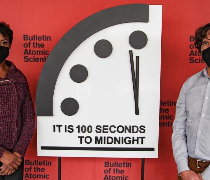 En 2022, el Boletín de los Científicos Atómicos fijó el reloj en 100 segundos para la medianoche —la misma hora desde 2020— impulsados principalmente por la crisis climática y la pandemia de COVID-19.