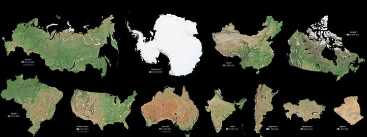 De ahí por ejemplo se desprende que China, Rusia o Estados Unidos son masas inigualables de tierra, a diferencia de zonas como Isla de Pascua o Gibraltar.