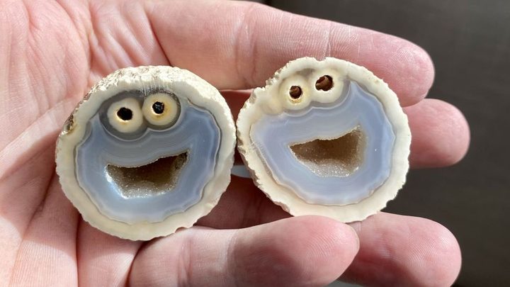 “Es un poco raro encontrar una forma de cara en las ágatas, pero en muchos casos es como mirar a las nubes. Es como si vieras una cara. Lo que hace único al Monstruo de las Galletas es que no hay dudas: está claro que es el Monstruo de las Galletas; no requiere explicación”.