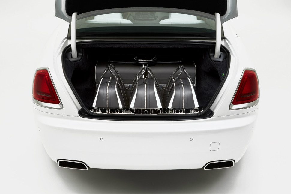 Con una montura de fibra de carbono y cuero cosido a mano, el conjunto elegante comprende dos maletas Gran Turismo, tres bolsos Weekender, y un Garment Carrier (Portatrajes), “meticulosamente diseñado para ser alojado en el maletero de un Rolls-Royce Wraith”, afirma el fabricante de automóviles.