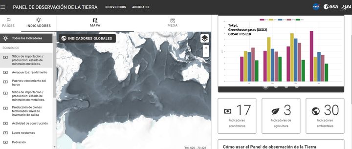 La herramienta explora indicadores ambientales y económicos basados en datos de detección remota, e investigue cómo las medidas de distanciamiento social y las cuarentenas regionales han afectado el aire, la suelo y el agua en la Tierra.