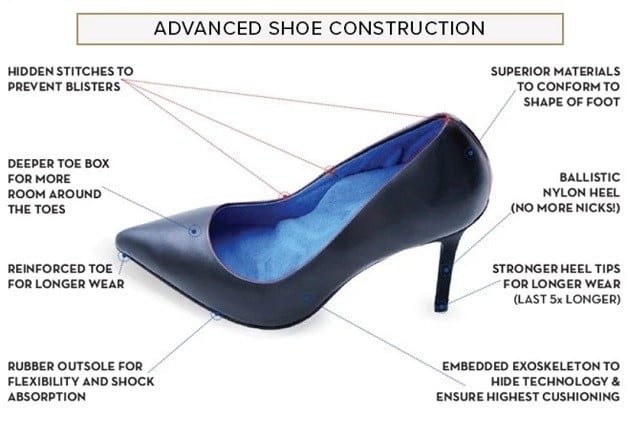 Dunbar y su equipo diseñaron estos tacones de alta tecnología para que se sientan como unas tenis de deporte, al colocar cuidadosamente amortiguación en múltiples puntos, ampliando ciertas partes del calzado, seleccionando cuidadosamente los materiales y brindando opciones de tamaño más precisas.