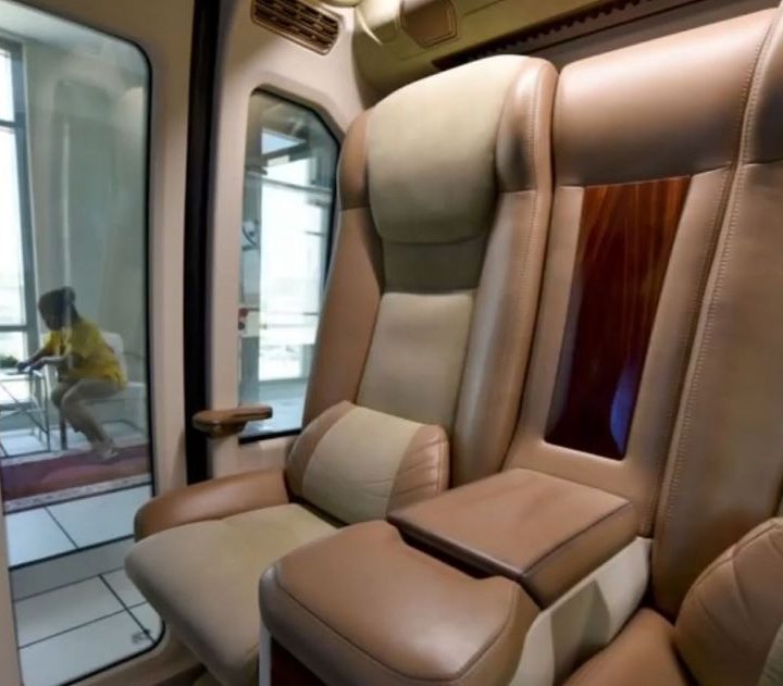 Precisamente el interior de estas cápsulas es llamativo, porque estas primeras versiones cuentan con asientos similares a los de un transporte tradicional de primera clase. También hay una pantalla y un sistema de audio para amenizar los viajes y que estos sean más cómodos; respecto a velocidad, estas cápsulas tienen un potencial máximo de hasta 150 km/h (93 mph).
