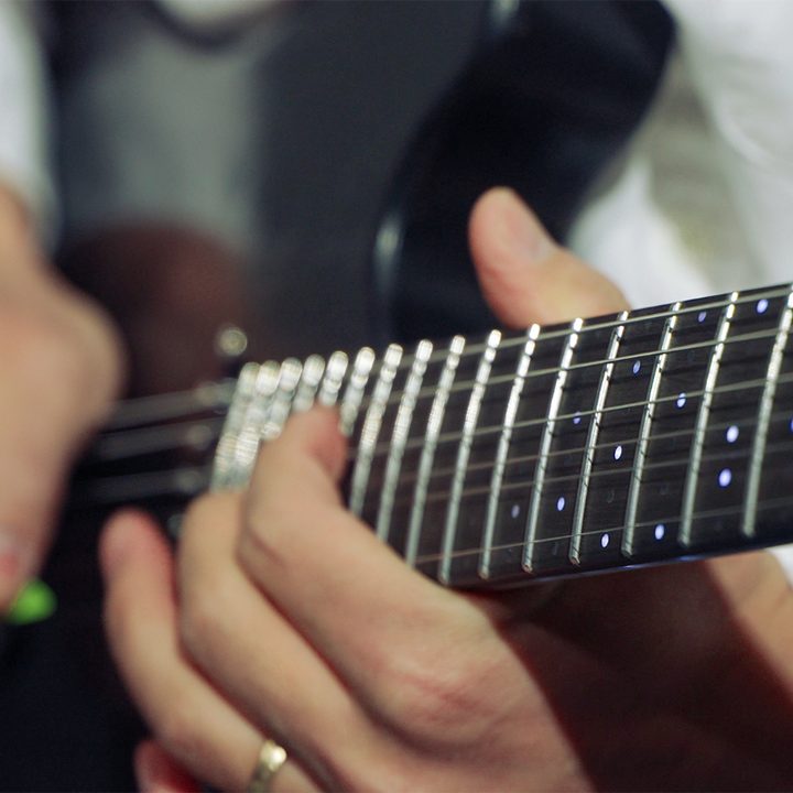 Probablemente has notado que las guitarras, por lo general, tienen marcadores de trastes en el diapasón a lo largo del mástil, esto como ayuda visual para encontrar rápidamente las notas a tocar. De manera similar, la guitarra inteligente del laboratorio creativo de Samsung tiene luces led integradas para las seis cuerdas en cada uno de los 22 trastes de la guitarra.