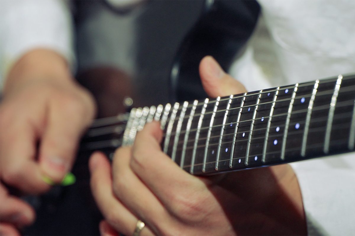Probablemente has notado que las guitarras, por lo general, tienen marcadores de trastes en el diapasón a lo largo del mástil, esto como ayuda visual para encontrar rápidamente las notas a tocar. De manera similar, la guitarra inteligente del laboratorio creativo de Samsung tiene luces led integradas para las seis cuerdas en cada uno de los 22 trastes de la guitarra.