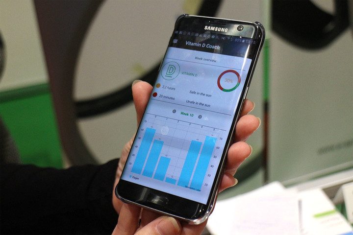 La vitamina D es esencial para nuestra salud, pero no siempre tenemos suficiente. O tenemos mucho o tenemos muy poquito. Helios es el primer vestible que es capaz de rastrear la cantidad de vitamina D en tu cuerpo. Es un anillo inteligente. Analiza cuánto tiempo estamos frente al sol y que tipo de bloqueador debemos utilizar. Puedes decirle a través de la aplicación cómo estás vestido, el color de tu piel y a partir de ahí se ajusta.