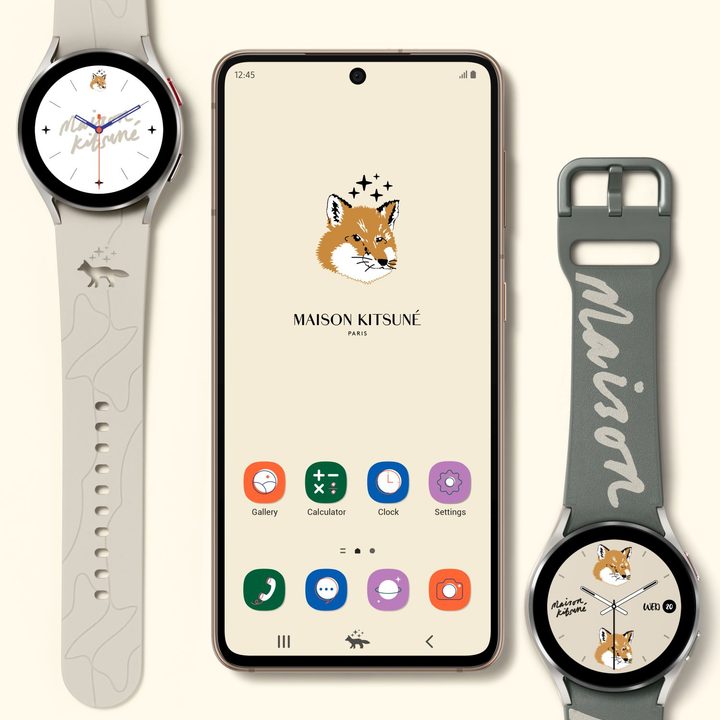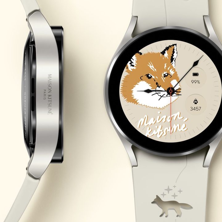 El Galaxy Watch 4 Maison Kitsuné Edition cambia el aspecto del reloj inteligente tanto en la correa como en la pantalla inicial, además de agregar el logo del zorro, ícono distintivo de esta edición, como un tema para la interfaz One UI Watch de Samsung.