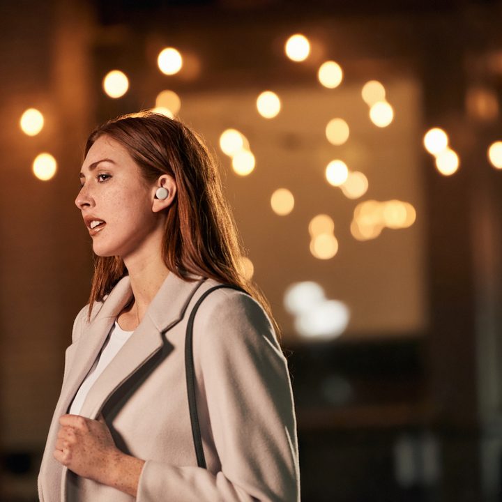 Para activar o desactivar la cancelación activa de ruido, solo tienes que presionar el audífono… ¡o pedírselo a Alexa! Con el modo ambiente activado, también puedes ajustar fácilmente la cantidad de sonido ambiental que escuchas a través de la configuración del dispositivo en la aplicación Alexa de tu teléfono.