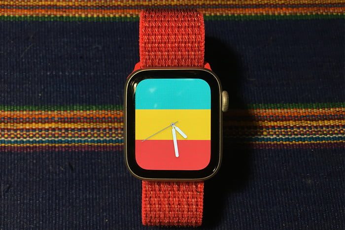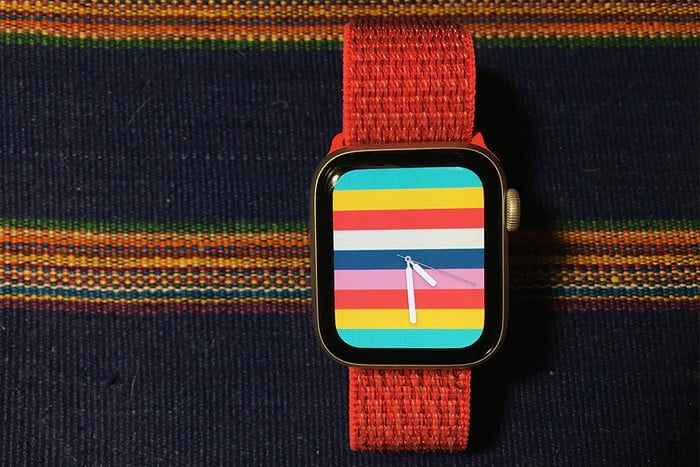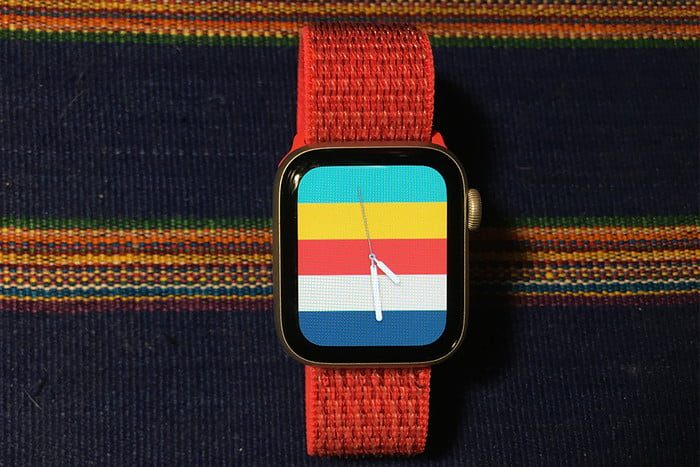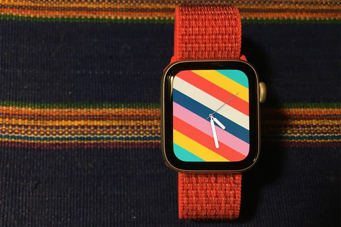 Franjas, nueva con WatchOS 7, es una esfera soberbiamente personalizable. Puedes alterar el número de franjas visibles desde nueve a solo dos y cualquier número en medio. Puedes reordenar los colores en la secuencia que más te agrade. También puedes rotar la posición de las franjas para que queden en forma vertical, horizontal o a un ángulo desde cero grados hasta 345 grados en incrementos de 15 grados. La versión de pantalla completa de la esfera no acepta complicaciones. Sin embargo, la versión circular, sí.