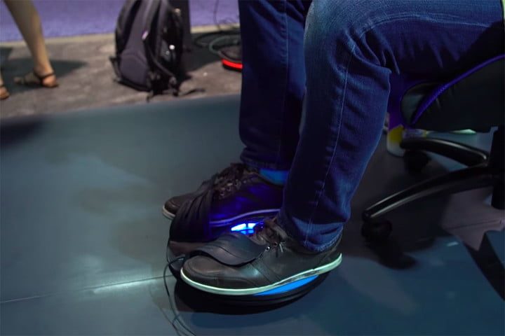 Similar en concepto al 3DRudder para PlayStation VR pero con un enfoque aún mayor en el movimiento, los Cybershoes actúan como un complemento para tu experiencia VR actual. Deslizándolos sobre un par de zapatos estándar, te sentarás en el asiento y el reposabrazos de los Cybershoes, que pueden girarse completamente. Caminas como lo harías en la vida real, y tus movimientos se transfieren a los juegos que estás jugando. Los usuarios con movimientos limitados en el mundo real tienen la oportunidad de moverse más libremente dentro de los juegos.
