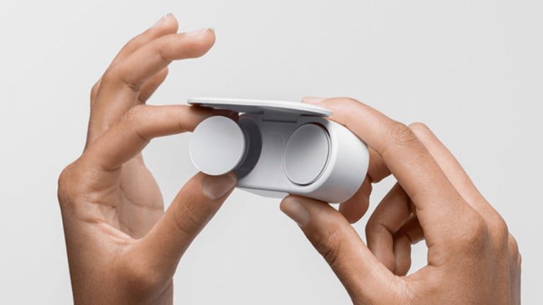 Los Surface Earbuds también están orientados hacia la música, con fácil acceso a Spotify, pero Microsoft ha dirigido este producto al sector empresarial. Están diseñados para permitirte interactuar con Office 365 utilizando la voz (dictado, subtítulos de presentaciones en tiempo real, traducción de subtítulos en tiempo real) y tus dedos (varios gestos táctiles te permiten controlar las presentaciones de PowerPoint). Curiosamente, a pesar de integrar Cortana, Microsoft no ha dicho nada acerca de hablar con su asistente de voz (o el de cualquier otro servicio) a través de los Earbuds de Surface. Tampoco hay reducción de ruido o cancelación, otra carencia extraña dado que los audífonos Surface ofrecen ambas funciones.
