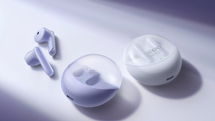 En el apartado de diseño, OPPO refiere que los auriculares tienen un acabado brillante inspirado en joyas. De hecho, el case cuenta con una tapa transparente en cualquiera de sus dos versiones, morada y blanca.