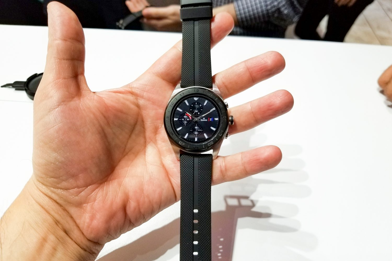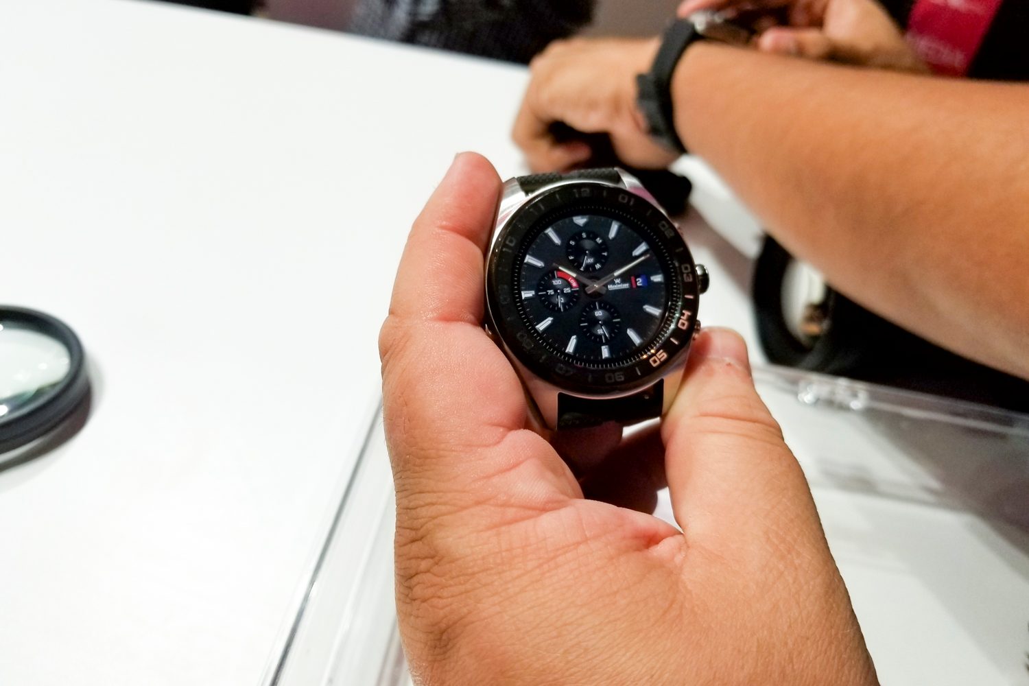 Lo primero: es muy atractivo, y se ve muy bien. De hecho, a primera vista, nos gusta incluso más que el LG Watch Sport (que viene con Android Wear 2.0), un modelo presentado hace casi dos años y que en su momento ponderamos bastante bien. Para los amantes de los relojes grandes, el LG Watch W7 luce un llamativo aro giratorio, cosa que hay que poner allí muy mal para que no se vea bien. Sí: estamos hablando de apariencia, de imagen, de fotografía, que fue lo poco y nada que vimos del reloj durante la presentación.