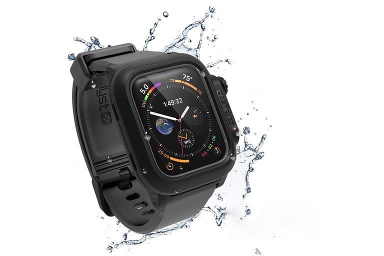 Si haces inmersiones habitualmente u otro tipo de aventuras, no tienes por qué dejar tu reloj en la habitación del hotel o en el cajón. La funda impermeable Catalyst, hecha de policarbonato resistente, soporta golpes, arañazos y cuenta con una silicona ligera que garantiza una protección total hasta 100 metros bajo el agua. Cuenta con certificación IP68 para que puedas realizar tus atrevidas escapadas sin preocuparse por dañar el reloj. Hecho con la máxima precisión, la Catalyst siempre mantiene tu dispositivo protegido, pero también completamente funcional con su Bluetooth, monitor de ritmo cardíaco, bocina y micrófono, todos de fácil acceso, aunque el ECG y el EKG no funcionan con la funda puesta. Esta funda supera el estándar militar MIL-STD 810G para golpes y caídas de hasta 2 metros) y permite un control completo sobre todos los botones y sensores, incluyendo el dial de corona giratorio y el botón lateral. La funda soporta todas las versiones del Apple Watch.