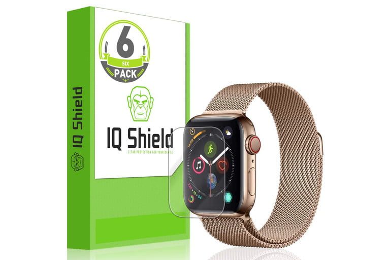 El protector de pantalla IQ Shield se define mejor como una «película inteligente» y está diseñado para ser ópticamente transparente después de su instalación; combina perfectamente la protección y la interactividad en tu experiencia portátil. Los protectores IQ Shield LIQuidSkin están diseñados mediante un proceso que tiene en cuenta la sensibilidad de pantalla, un sistema de auto reparación, no amarillea con el tiempo y ofrece una gran transparencia. El producto de IQ Shield incluye un protector de pantalla patentado, un kit de instalación con solución de rociado, escobilla de goma, un paño sin pelusa e instrucciones. El adhesivo anti-burbujas LIQuidSkin, haciendo la instalación en húmedo, asegura que ésta sea fácil. Está disponible para todas las generaciones y modelos de Apple Watch.