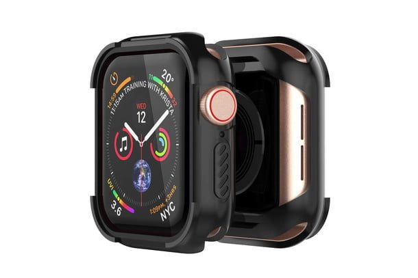La Umtele Rugged Case for Apple Watch es una funda tipo bumper de doble capa premium que combina una carcasa dura duradera y TPU flexible para la protección completa de 360 grados de la esfera de tu reloj. Este diseño evita daños por arañazos y también protege contra golpes. Los recortes precisos le dan un ajuste perfecto para todos los puertos y botones, al mismo tiempo que te permite acceder con precisión a la pantalla, el botón de encendido, la corona digital, la bocina y el micrófono. Es fácil de instalar con un bisel frontal elevado y abrir la parte posterior es rápido y fácil. Viene en varias combinaciones de dos tonos de negro y gris, rojo, blanco y azul marino o en negro o rojo liso para los modelos Apple Watch 4 y 5.