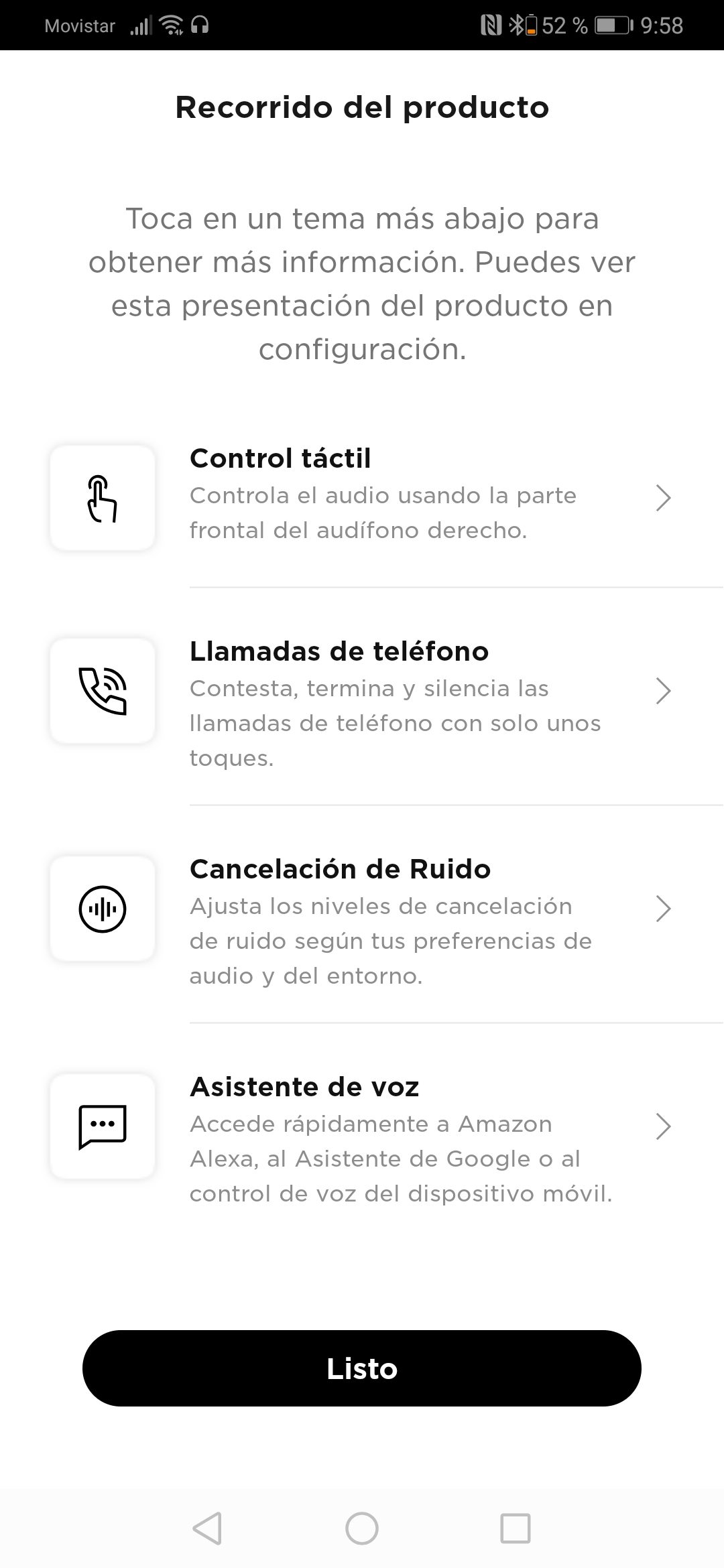 Desde la app es posible controlar el volumen y el nivel de cancelación de ruido (de 0 a 10) y comprobar el tiempo de autonomía disponible. Un tutorial explica cómo utilizar diferentes funciones del producto como los controles táctiles, las llamadas de teléfono, la cancelación de ruido y el asistente de voz. Así que si alguna vez te lías y no te acuerdas, puedes mirarlo ahí.
