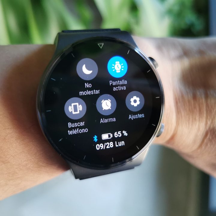 Otras funciones que nos han resultado muy cómodas y útiles del Huawei Watch GT 2 Pro son la posibilidad de utilizarlo para tomar fotos en remoto con la cámara del teléfono (solo es posible hacerlo con un teléfono de Huawei), la linterna y hablar por teléfono desde el propio dispositivo. El altavoz integrado ofrece una calidad más que decente, funciona muy bien cuando recibes una llamada y cuando pones música. Al principio se hace raro pero es muy agradable poder hablar por teléfono sin necesidad agarrar el teléfono.