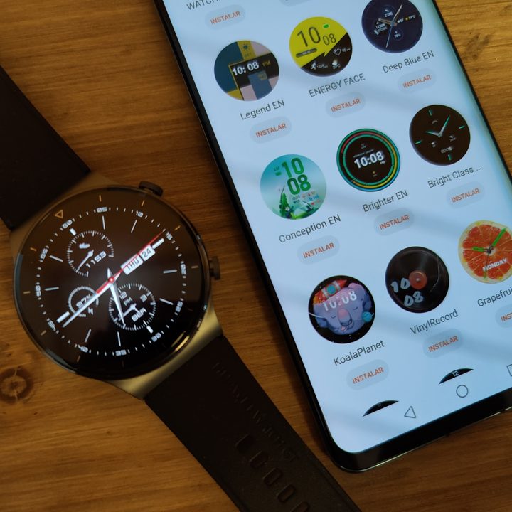 Aparte de las esferas que vienen incluidas en el teléfono, desde la app puedes instalar muchas más y también poner fotos propias a través de Huawei Share OneHop Watch Face. Es un proceso muy sencillo, como hemos comprobado en nuestras pruebas con una foto de unas rosas. Activas el NFC en el teléfono (uno con EMUI 11 o posterior), escoges una foto de la galería y la abres. Habilitas la función OneHop en el reloj (a través de Ajustes) y juntas la parte posterior del teléfono con la pantalla del reloj y, en unos segundos, la imagen se coloca como una esfera.