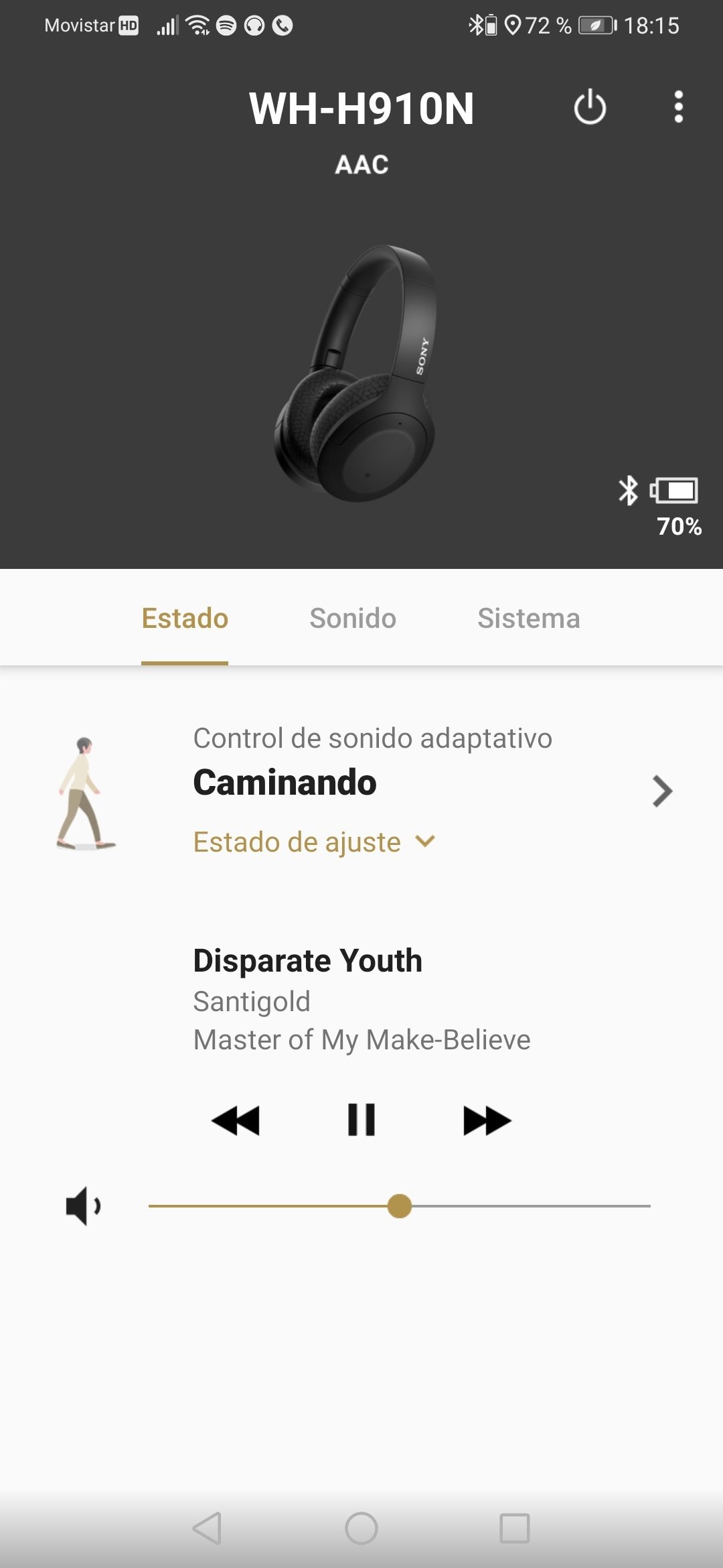 Los Sony WH-H910N se emparejan muy fácilmente al smartphone y con la aplicación. La reproducción se controla mediante la superficie táctil del auricular derecho, y también es una dinámica muy sencilla. Los gestos son fáciles y se aprende enseguida a deslizar los dedos para que responda al instante. El volumen también es posible ajustarlo con el botón del volumen del teléfono y desde la app, pero es mucho más cómodo no tener que sacar el smartphone, claro.