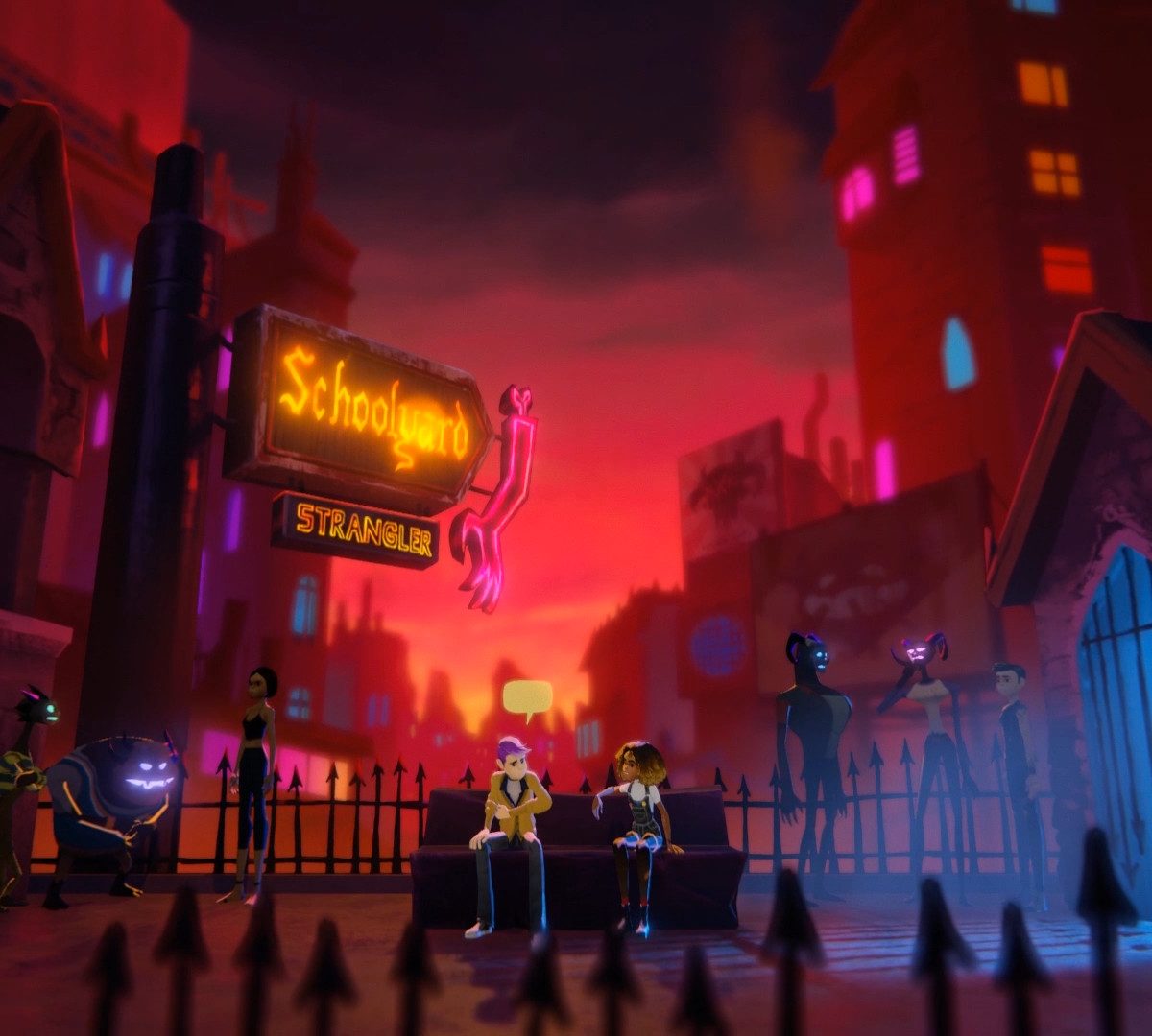 La demo que pudimos jugar nos llevaba a controlar tanto a Milo como Lola en sus primeros pasos en el inframundo, viendo cómo los demonios vomitan en las calles o vuelan por los aires sin importar si se chocan con alguien en el camino o no. Nuestro objetivo es intentar convencer a un demonio de que nos deje volver a casa (aunque no sabemos cómo llegan los personajes allí en primer lugar) pero antes de ello, pasamos por nuestra primera visita a un bar.