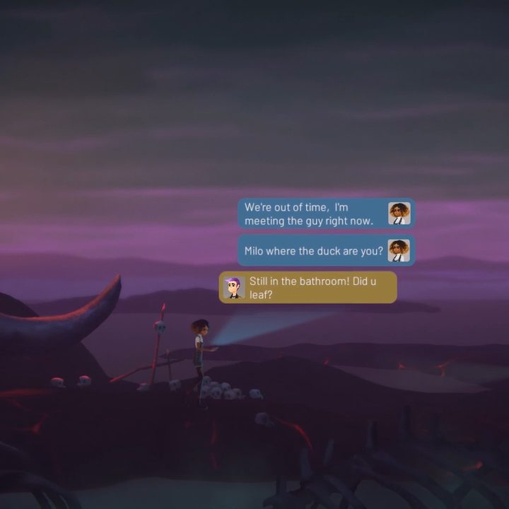 Afterparty sienta sus bases sobre esta primera idea, continuando con el formato de ofrecer una experiencia enfocada en diálogos y descubrir la historia de a poco mediante interacciones. Pero desde ya la premisa es más que descabellante, llevando a los protagonistas Milo y Lola al mismísimo infierno, en donde los demonios que tanto tenemos son bastante más amigables de lo que pensamos. Bueno, al menos algunos de ellos.