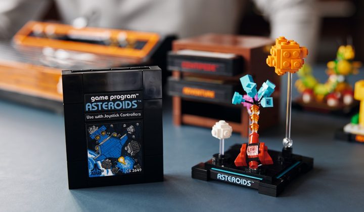 El set también incluye un trío de cartuchos de juego basados en los juegos clásicos Asteroids, Adventure y Centipede, que se pueden colocar en la propia consola de Lego.