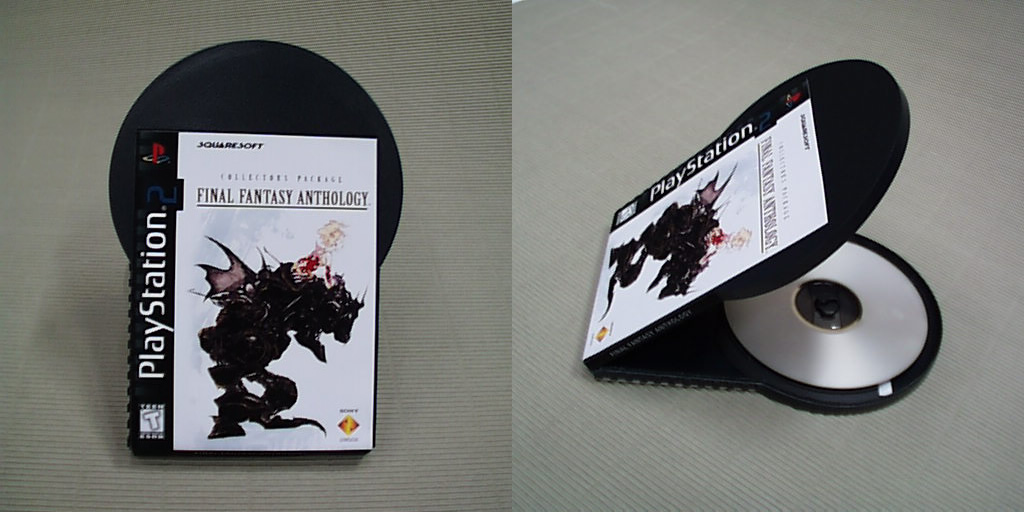 Estas cajas lucen muy distintas a las tradicionales de los juegos de PS2, comenzando porque no son simétricas. La mitad de la caja es cuadrada, mientras que el resto tiene la forma de un disco.