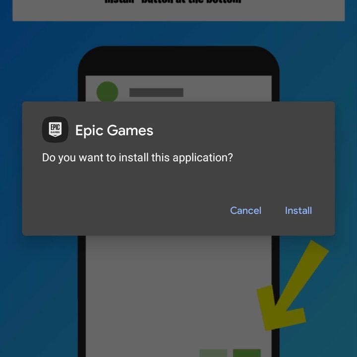 Después de eso, puedes tocar Abrir al final del proceso de instalación o ejecutar la app Epic Games desde el cajón de aplicaciones o la pantalla de inicio. Tal como con un teléfono Samsung, necesitarás buscar Fortnite en la aplicación Epic Games e instalarlo. Es posible que se te solicite confirmar los permisos de almacenamiento, así que no dudes en autorizarlo. Es posible que también debas otorgar permiso a la aplicación para instalar el juego, por lo que si se aparece un mensaje en el sistema, presiona Configuración y luego marca la casilla Permitir de esta fuente. Luego presiona el botón Atrás y presiona Instalar.