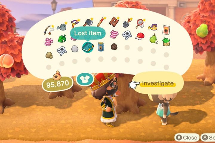 Para determinar de quién puede ser el artículo encontrado, debes ir a tu bolsillo e inspeccionar el objeto. Simplemente presiona X, selecciona el objeto perdido y luego presiona A, tras esto aparecerá una opción para investigarlo. Esto te dará una pista sobre quién es el dueño, ya que, si tienes la categoría de “buenos amigos” con un aldeano, te aparecerá un diálogo haciendo referencia a la personalidad del dueño. Cada objeto perdido tiene sus propias frases de referencia, las cuales te pueden ayudar a averiguar a quién pertenece cada objeto. Aunque no está explícito en el juego, cada objeto perdido tiene una frase asignada para los distintos tipos de personalidades de los aldeanos.