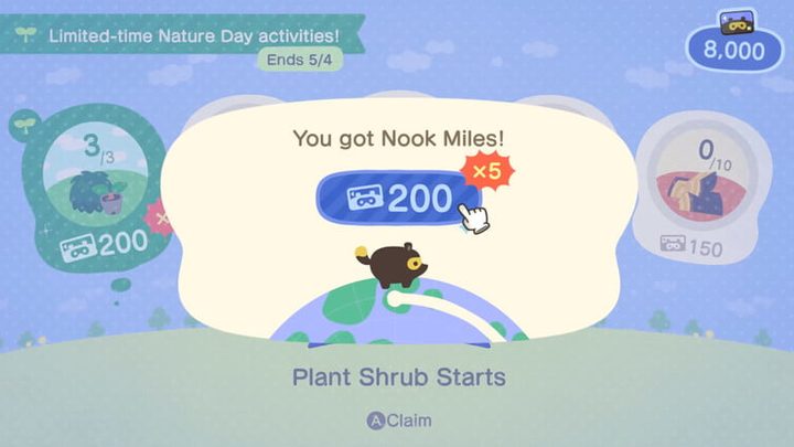 Animal Crossing: New Horizons ama recompensarte por hacer pequeñas cosas para mejorar tu isla. Tareas como golpear rocas o atrapar peces y bichos —lo cual harías de todas formas para conseguir dinero— te permiten ganas millas, así como otras actividades para embellecer tu isla, como plantar árboles y flores. Recomendamos al menos completar las cinco primeras tareas diarias, ya que tendrán un multiplicador de millas que harán que estas actividades simples tengan mucho más valor.